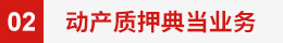 動(dòng)產(chǎn)典當(dāng)業(yè)務(wù)內(nèi)容:機(jī)器設(shè)備、庫存物資等。